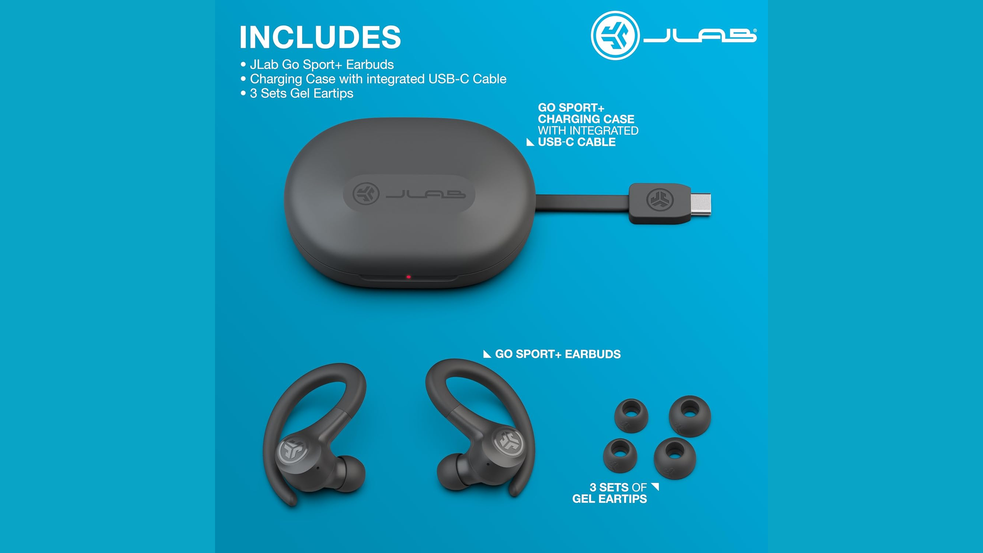 JLab Go Sport+ Wireless Workout Earbuds Featuring C3 Clear Calling, Secure Earhook Sport Design.